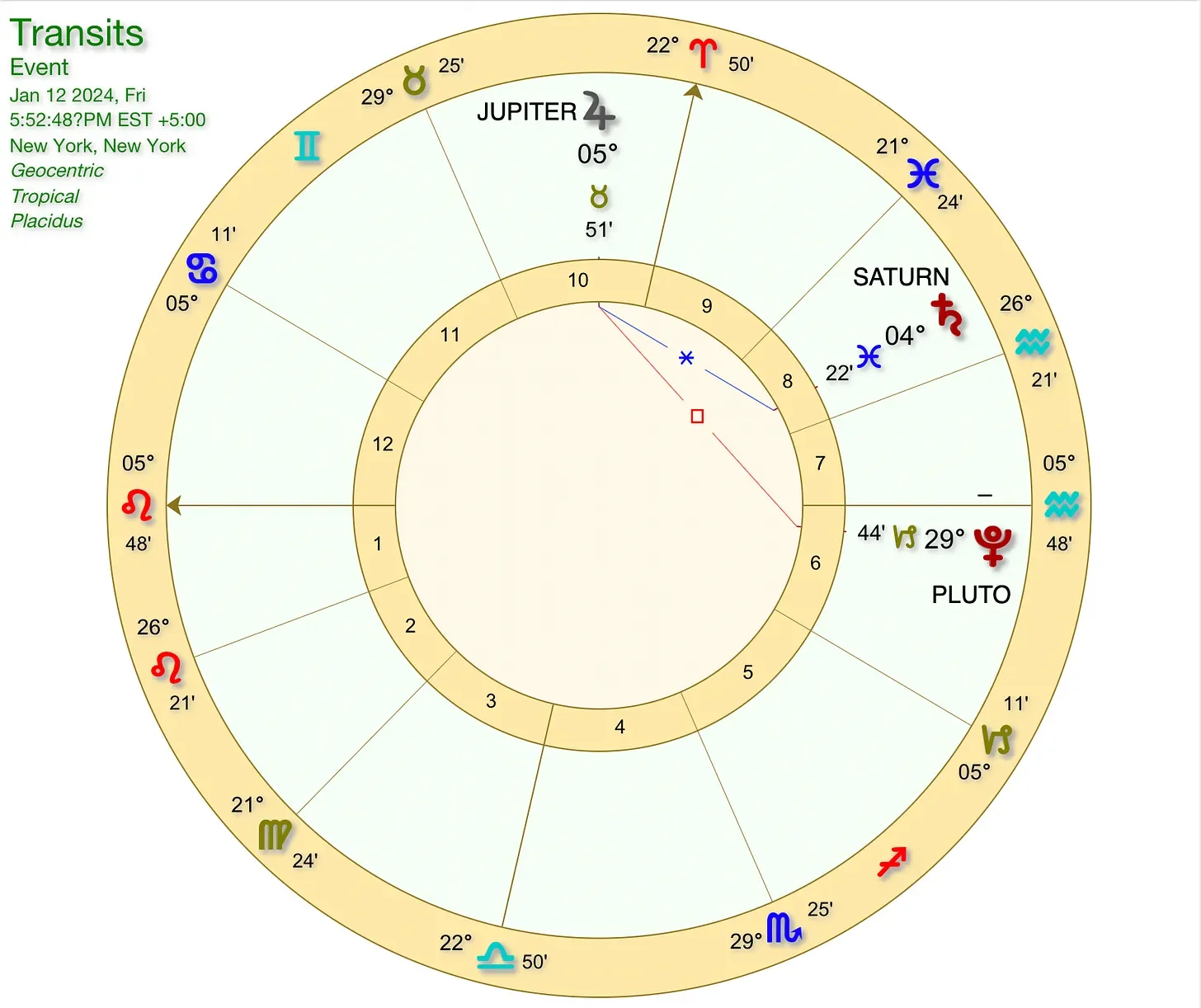 In the sky right now we have Jupiter in a sextile (60º) to Saturn and in a square (90º) to Pluto.