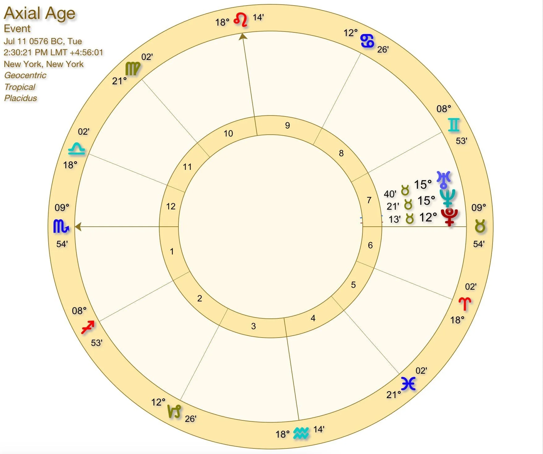 When you add Uranus to the mix, the Neptune-Pluto combination receives an acceleration of energy through innovation and freedom. Perhaps it was the archetype of Uranus that led Pythagoras to a mathematical understanding of reality, and Buddha to attain enlightenment. The Axial Age produced a remarkable amount of knowledge and spiritual insight that is still treasured and reliable today. So it seems deeply synchronistic that this period correlated with a once-in-a-lifetime world transit between the three outer planets.