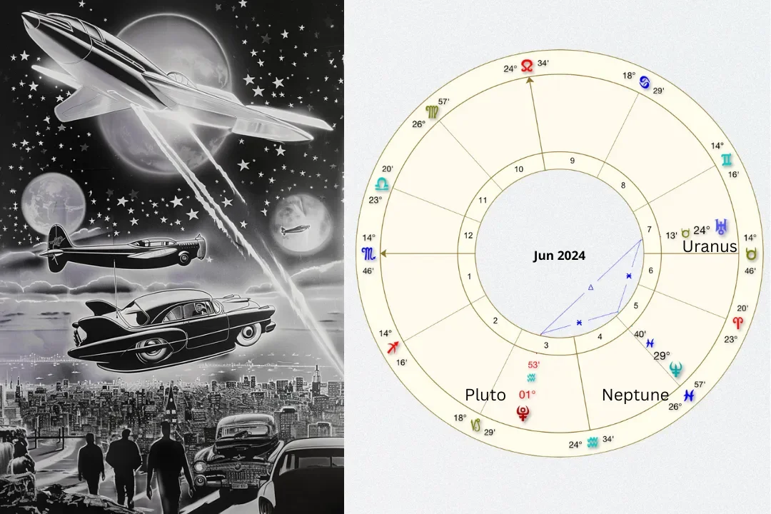 We have also recently entered a Uranus-Neptune sextile, lasting from 2023 to 2029. This alignment enhances the potential for groundbreaking advancements by merging Uranus's innovative energy with Neptune's imaginative and visionary influence. It creates an ideal environment for turning futuristic concepts like flying cars into practical realities.