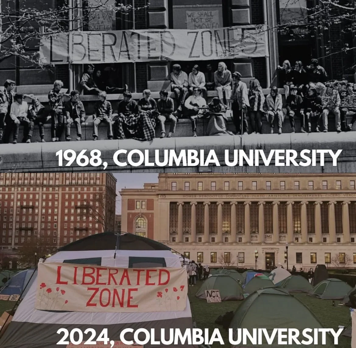 The "Liberated Zone" in 1968 was initiated by students protesting the war in Vietnam. Similarly, a liberated zone was created by current students protesting the war in Palestine. It is no coincidence that in 1968, Jupiter-Uranus-Pluto were all in alignment. In the words of Mark Twain: "history doesn't repeat itself but it often rhymes."