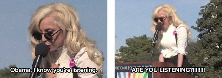 Lady Gaga gave a speech on LGBTQ rights at the National Equality March on October 11, 2009.