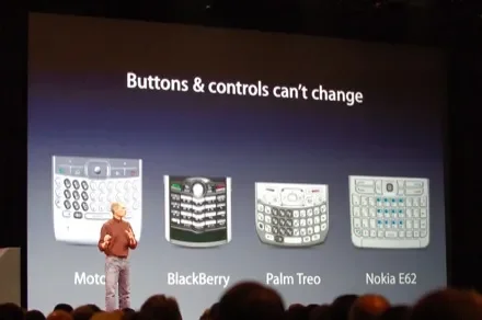 Steve Jobs unveiling the iPhone in 2007, comparing it to phones in existence at the time.