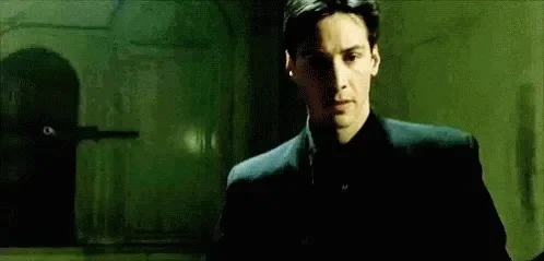 A scene from The Matrix when Neo experiences déjà vu.