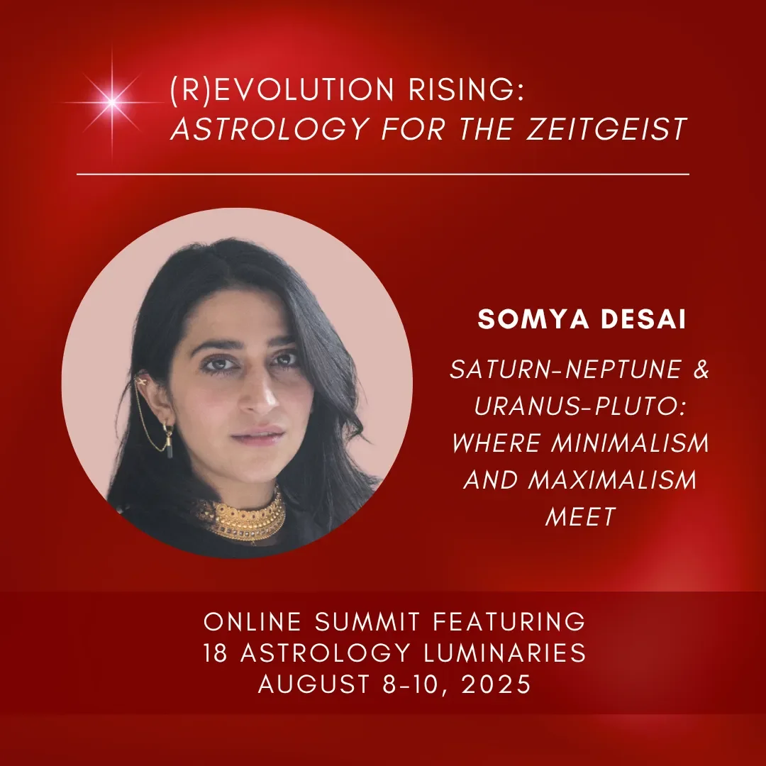 Through the visionary teachings of Richard Tarnas (founder of archetypal cosmology), the mentorship of Becca Tarnas (who’s also speaking at this summit), and the companionship of my classmate, co-founder, and husband, Abeer Desai, I discovered astrology’s profound role as a bridge between personal myth and cultural transformation. I am deeply grateful for this opportunity to share my perspective—for I stand on the shoulders of giants.